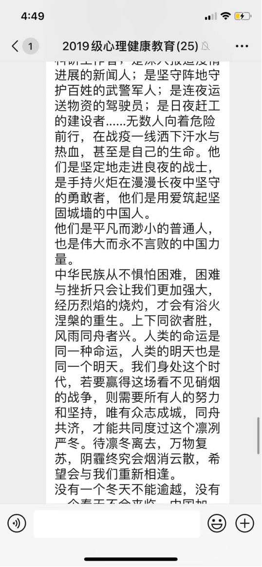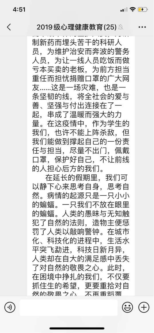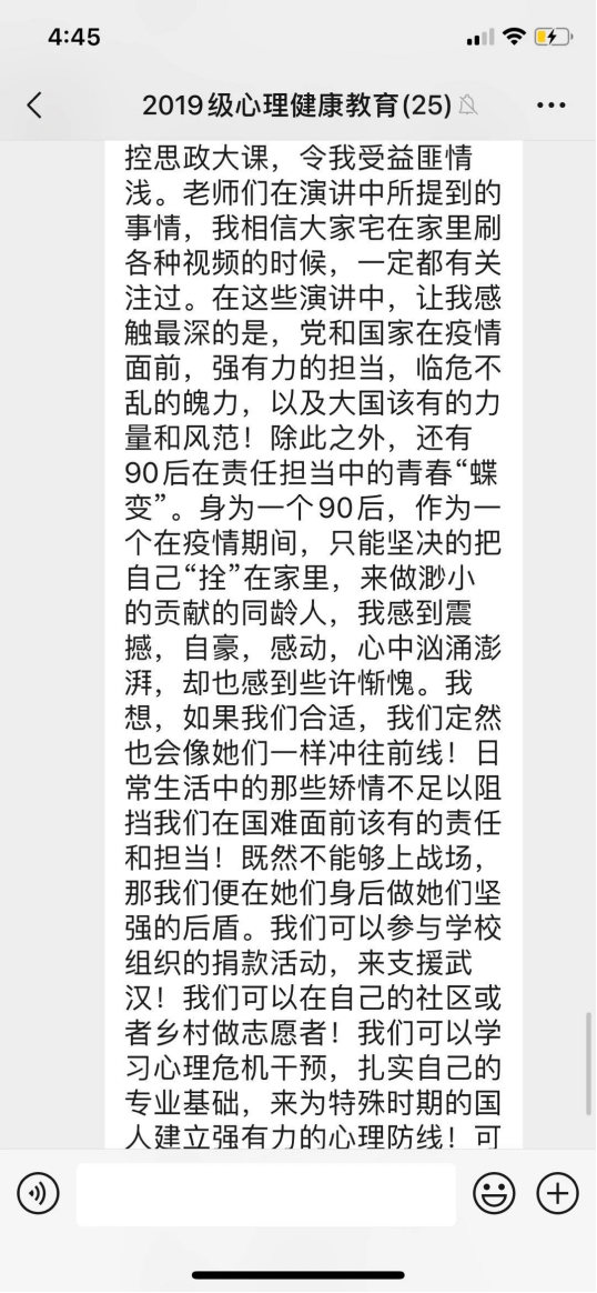 首先,我们要心怀感恩、感恩奋战在一线的白衣天使,感恩最美逆行者,感恩为疫情防控奋战的工作人员、志愿者。其次,我们要勇于担当,时代的重任终有一天将要交由我们肩负,我们应该埋首蓄力、练就过硬本领,肩负起时代重担。三是善于思考,懂得明辨是非。不信谣、不传谣坚信,用科学的态度面对世间万物。四是心存敬畏,敬畏生命、敬畏自然,共同构建和谐社会。最后大学生更要感悟时代、紧跟时代中珍惜韶华,自觉按照党和人民的要求锤炼自己、提高自己,做到志存高远、德才并重、情理兼修、勇于开拓,在火热的青春中放飞人生梦想,在拼搏的青春中成就事业华章。