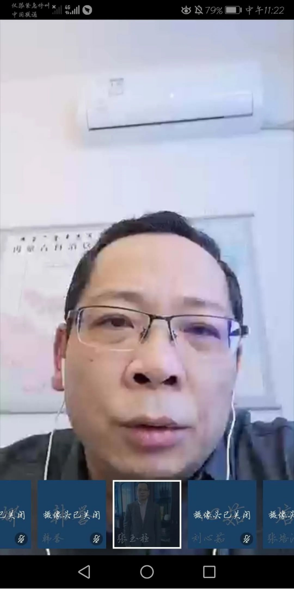 接着,张玉柱教授讲话,教授关注班级活动,再三强调网络学习要考虑所有人的实际情况,不能遗漏一个学生。张教授同时希望同学们利用好最后的假期时光,管理并安排好作息时间,多读书多思考,积极响应国家号召、听从社区和学校安排,不为国家添乱,以实际行动身体力行地参与到疫情防控工作中去,不辜负家人、学校和社会的期望,以实际行动做社会主义核心价值观的践行者。