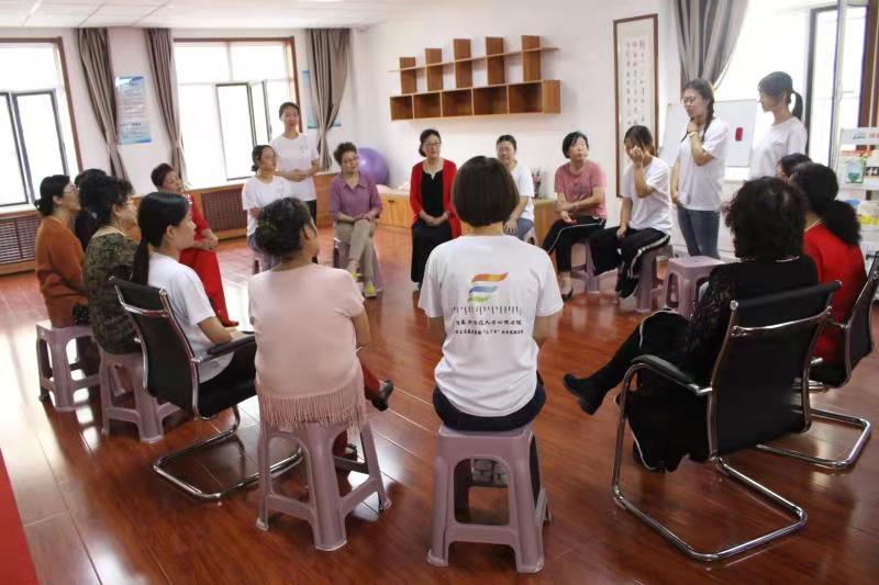 今天活动的目的是为社区居民进行十九大社会心理服务体系的宣讲和心理知识科普宣传,纠正一些关于心理认识的误区。我们首先与社区的居民简短的自我介绍后,大家很快熟悉了起来。同学们通过准备好的破冰小游戏——“击鼓传花”,使现场气氛迅速升温,阿姨们纷纷打开话匣子讲了对心理的认识。