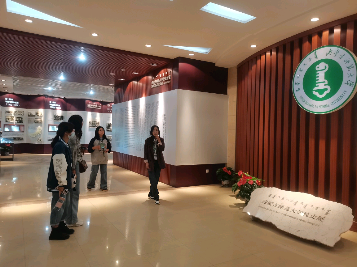 在讲解员的引导下,同学们分批进入了校史馆,首先映入眼帘的是内蒙古师范大学的校徽,师大校徽是蒙古文“老师”变形为钥匙的图案,寓意着教师是开启人类智慧的钥匙,体现了我校的民族及办学特色。随后,同学们一起重温了我校几十年来不断发展壮大的光辉历程。参观过程中,同学们认真倾听,从一块块展板、一件件实物中品味师大人“献身求实 团结奋进”的伟大精神。