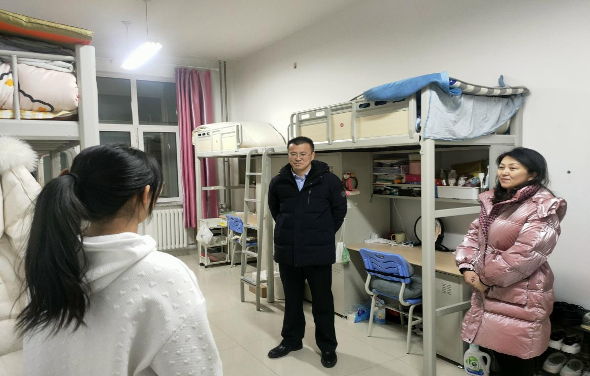 为了更好地关心假期留校学生,及时了解学生的思想状态和心理诉求,1月14日晚,新2最新登录口党委书记侯友、党委副书记副院长张春林、副院长金童林、学就办主任张金钟一行深入宿舍楼走访看望假期留校同学,为他们送去了温暖和关怀。