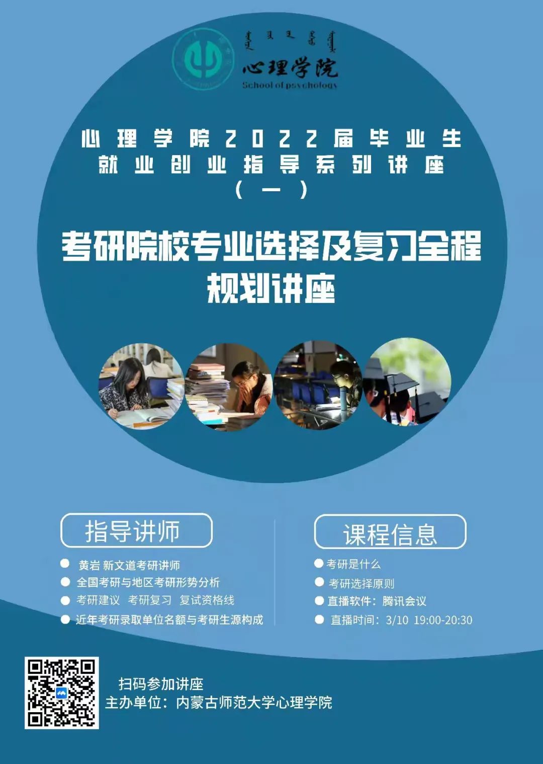 为丰富2019、2020级学生对考研的相关知识,激发学习热情、增强考研信心,新2最新登录口于2022年3月10日晚19点开展了2022届毕业生就业创业指导系列讲座(一)——考研院校专业选择及复习全程规划讲座。