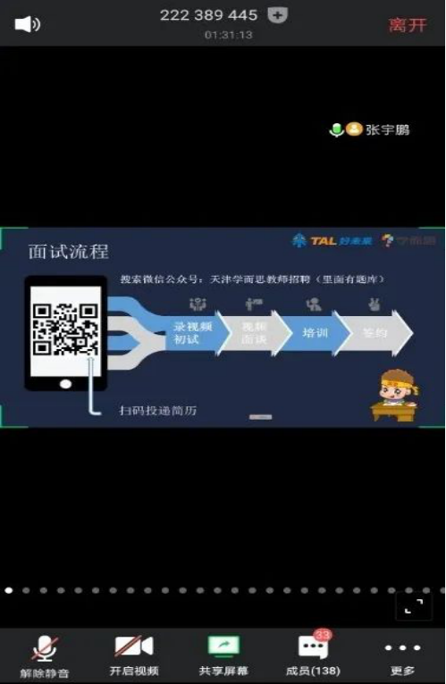 会议由张宇鹏老师主持,老师强调静心学习,同学们要抓住这非常时期的“大把时光”,专注学习,自我提升,为疫情退去后的春招和就业增添砝码。此次疫情爆发只能算是生命长河奔流前行中的浪花一朵,不断地学习与实践,主动做好职业生涯规划和积极面对人生的态度。