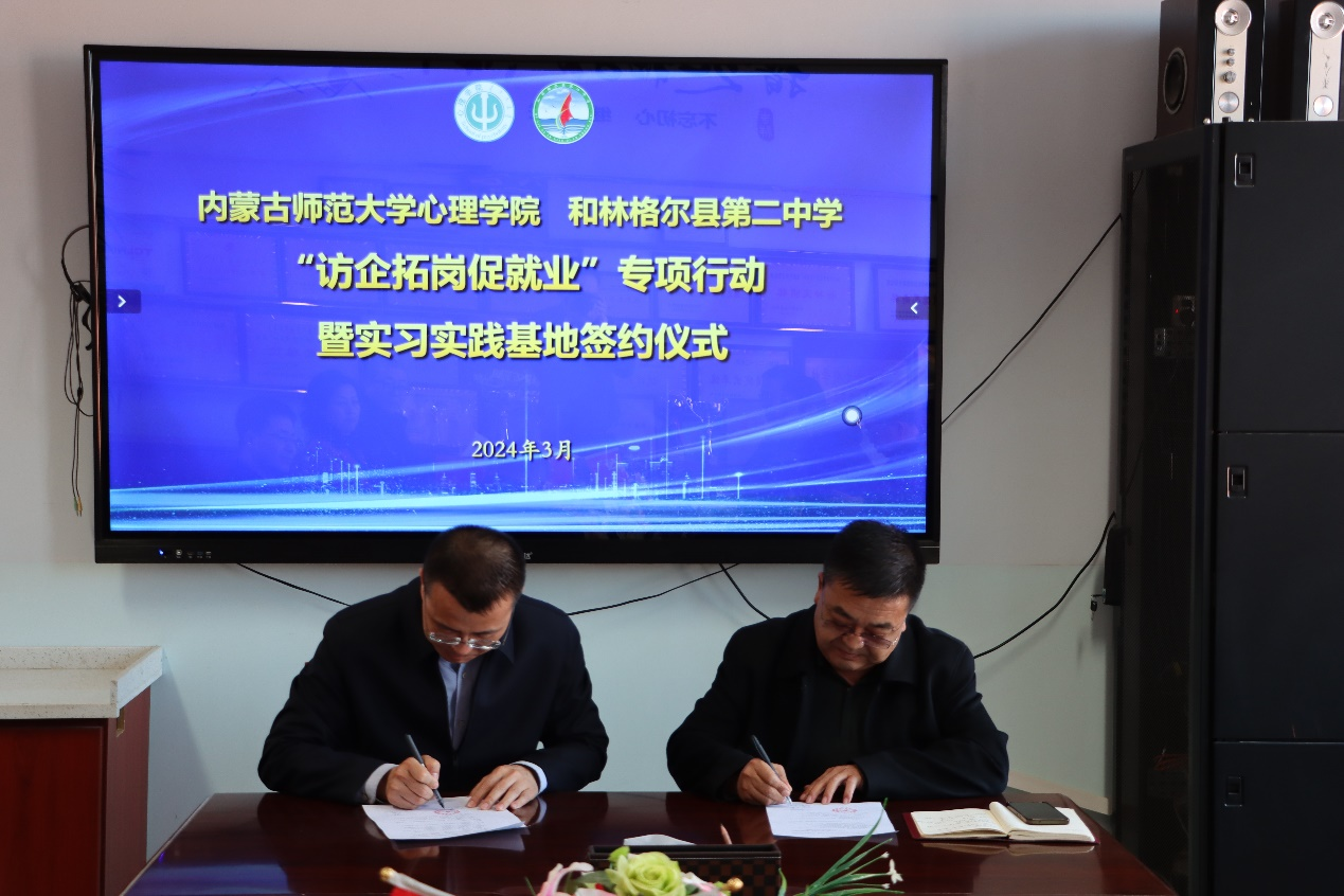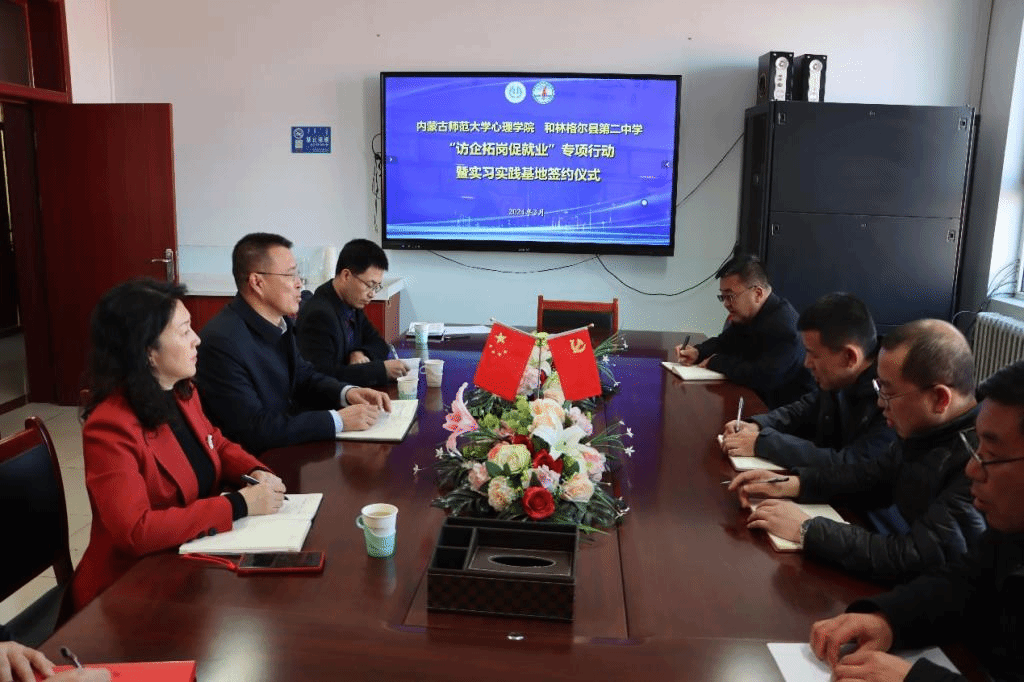 为贯彻党中央、国务院、教育部关于高校毕业生就业工作的决策部署,深入了解基础教育用人单位对心理健康教师的岗位需求和选聘条件,提升学院社会心理服务功能,加强师范生教育实践能力的培养和就业工作质量,近日,新2最新登录口党委书记侯友,院长乌云特娜,副书记、副院长张春林,副院长金童林带队先后赴和林格尔县第一中学、和林格尔县第二中学、呼和浩特市土默特中学开展“访企拓岗促就业”专项行动,并签署实习实践基地建设协议。