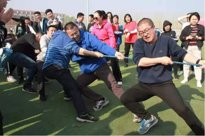 趣味项目设置了旋转射门、夹气球赛跑、集体跳绳、八人九足、击鼓颠球。师生共同体验到团队合作精神,兼顾了趣味性与互动性,增进了友谊。活动中,掌声,笑声,喝彩声此起彼伏,精彩纷呈,如火如荼。